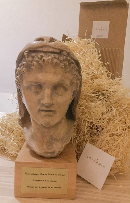 La Raquel va voler felicitar l’aniversari d’una manera ben especial a una persona amant, a parts iguals, de la història i l’esport. No podia haver trobat millor obsequi que aquesta rèplica d’un Hércules jove, màxim representant de la força, la lluita i la valentia.