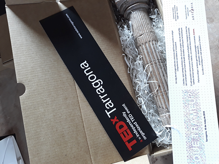 Per segons any consecutiu, les jornades divulgatives TEDx Tarragona van confiar en la nostra empresa per als obsequis als seus ponents. En aquesta ocasió, el tema vertebrador era Trames, i la peça escollida fou una columna pertanyent al Fòrum Provincial, lloc escencial per a la conversa, la transacció i tot tipus de “trames” personals, legals, comencials i filosòfiques.