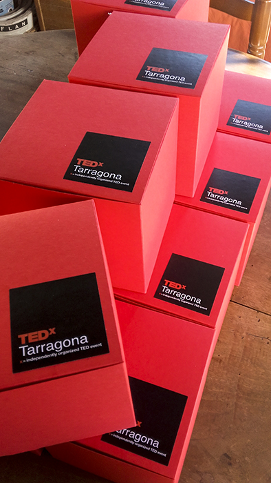 Shine era el leiv motiv d’aquesta edició de TEDx Tarragona. La simbologia d’una llàntia i la seva llum, va ser un encert d’obsequi per als ponents d’aquesta jornada de conferències adreçades a construir un món millor. La combinació dels colors negre, vermell i blanc, acord amb els colors coorporatius de l’esdeveniment, va resultar el toc definitiu a un obsequi carregat de simbologia.
